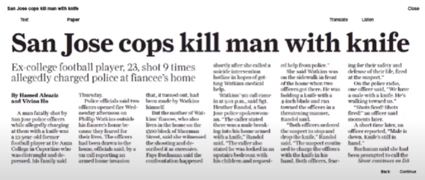 2. 칼을 가진 사람이, San Jose cops 를 죽였다.