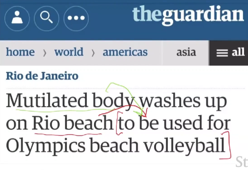 다음 헤드라인은 두가지로 모호하게 해석될 여지가 있다.