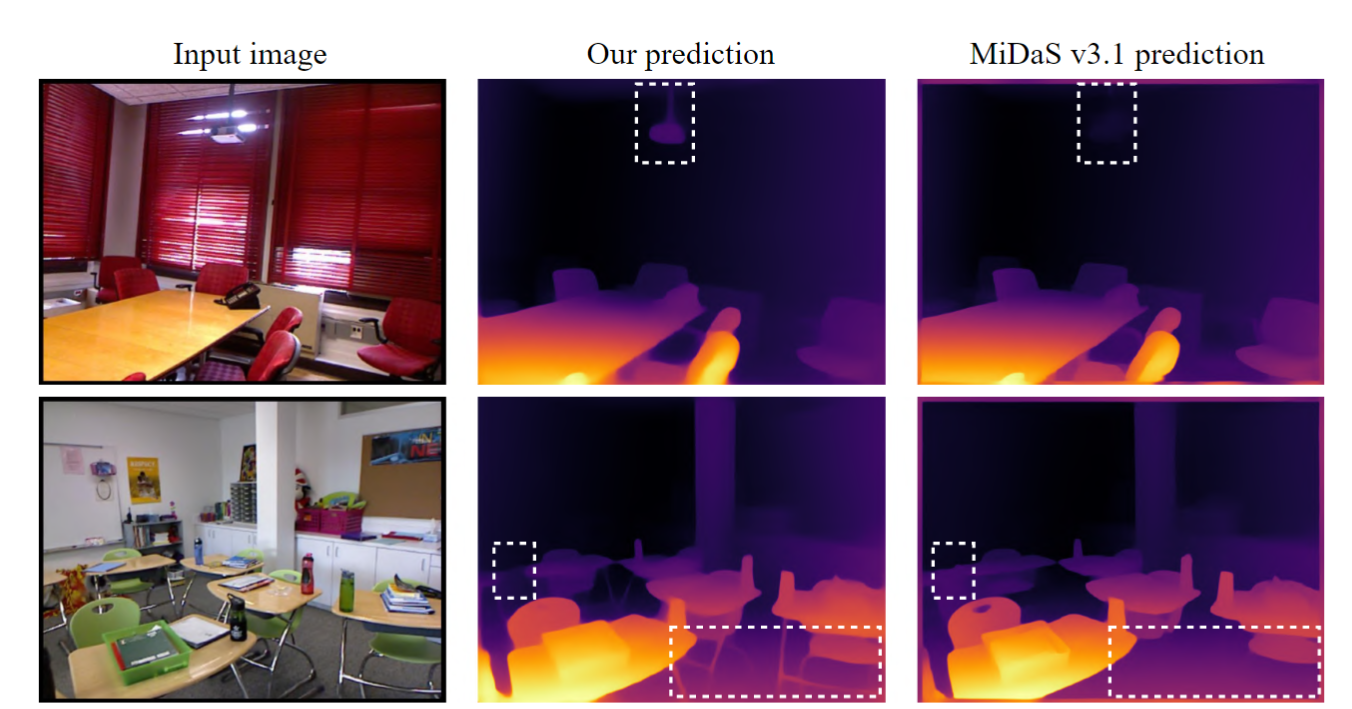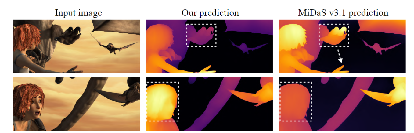 - Depth Anything 모델의 ViT-Small 모델이 MiDaS v3.1(2023)의 ViT-Large 모델보다 더 좋은 성능을 보이는 점이 눈에 띈다.