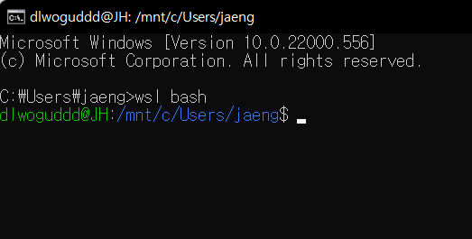 1. cmd나 powershell 등 환경에서 리눅스 셸 환경을 열어준다. (저는 bash)