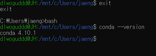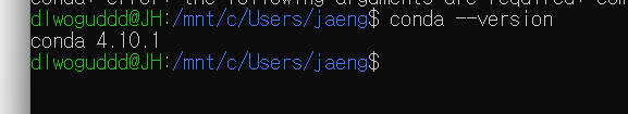 이후 conda --version 입력 시 다음과 같이 잘 먹히는것을 볼 수 있습니다.