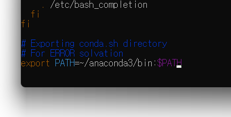 여기서 적용한 방법은 리눅스를 부팅 할 때마다 conda 실행파일의 경로를 PATH 환경변수에 추가해 conda 명령어를 어떤 디렉토리에 있든 사용가능하게 만든것 입니다.
